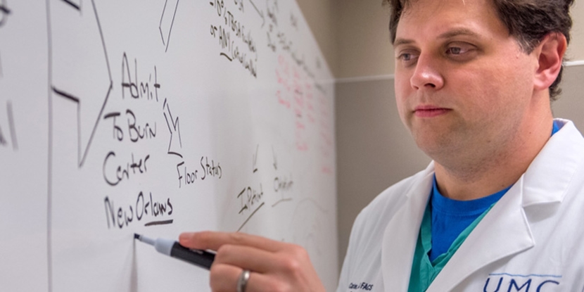 "When a patient like Darren presents after a severe burn, we mobilize a multidisciplinary team to address not just the wounds but the whole person," explained Jeffrey Carter, MD, medical director of the UMC Burn Center. "We have a phenomenal team of nurses, therapists, psychologists, pharmacists, and nutritionists, among other staff, who work together to ensure that every need of the patient is met."