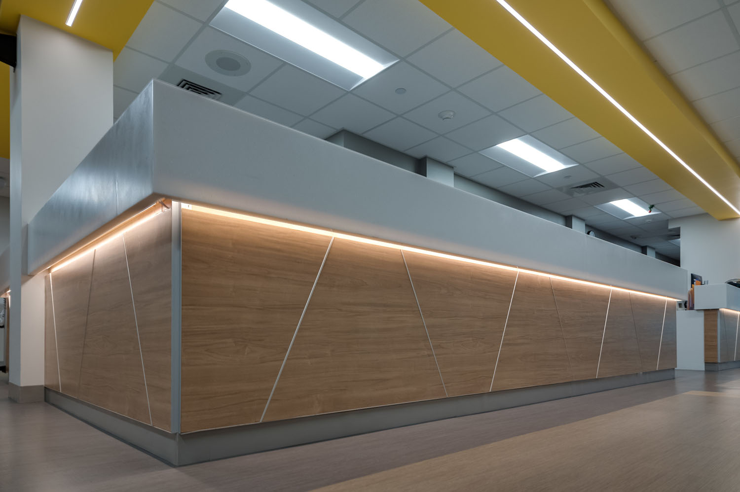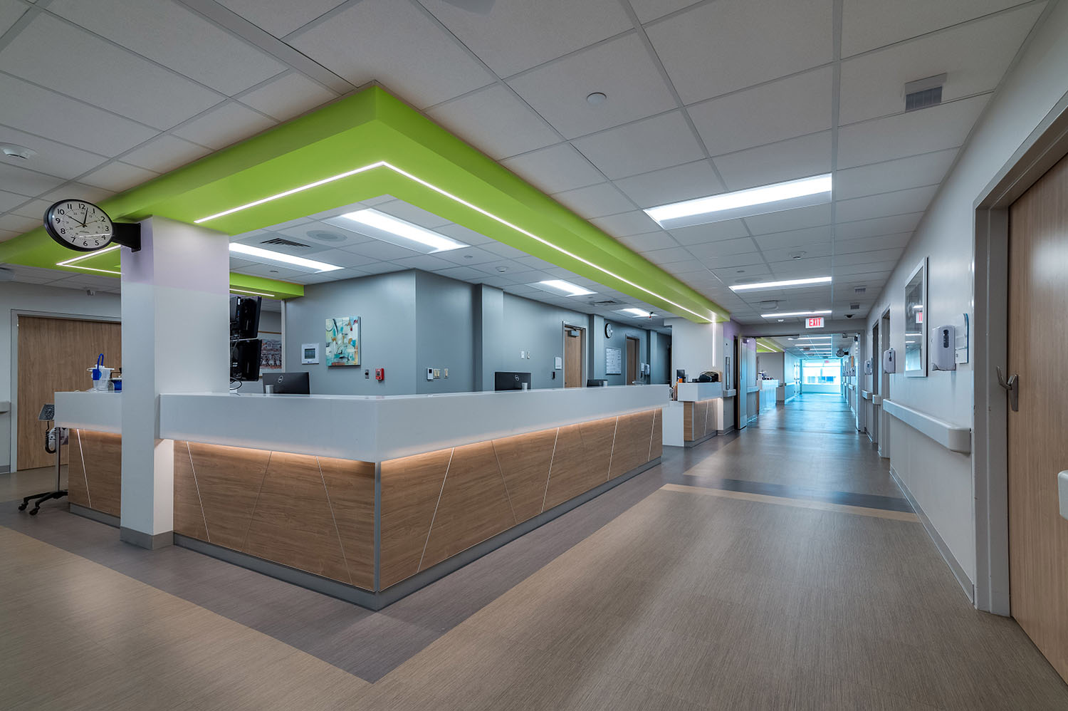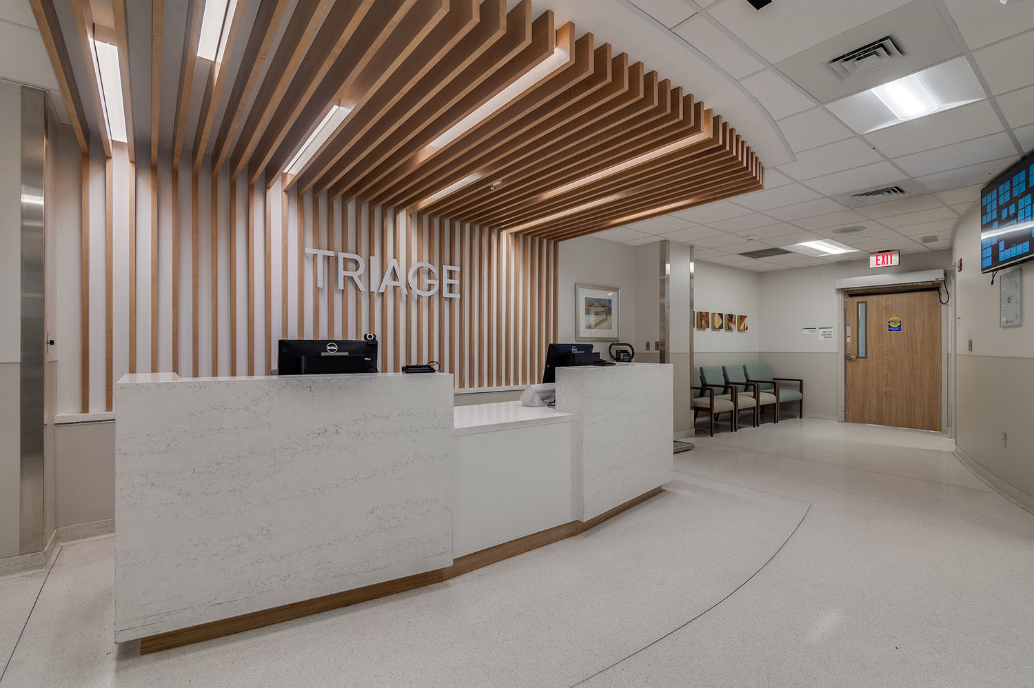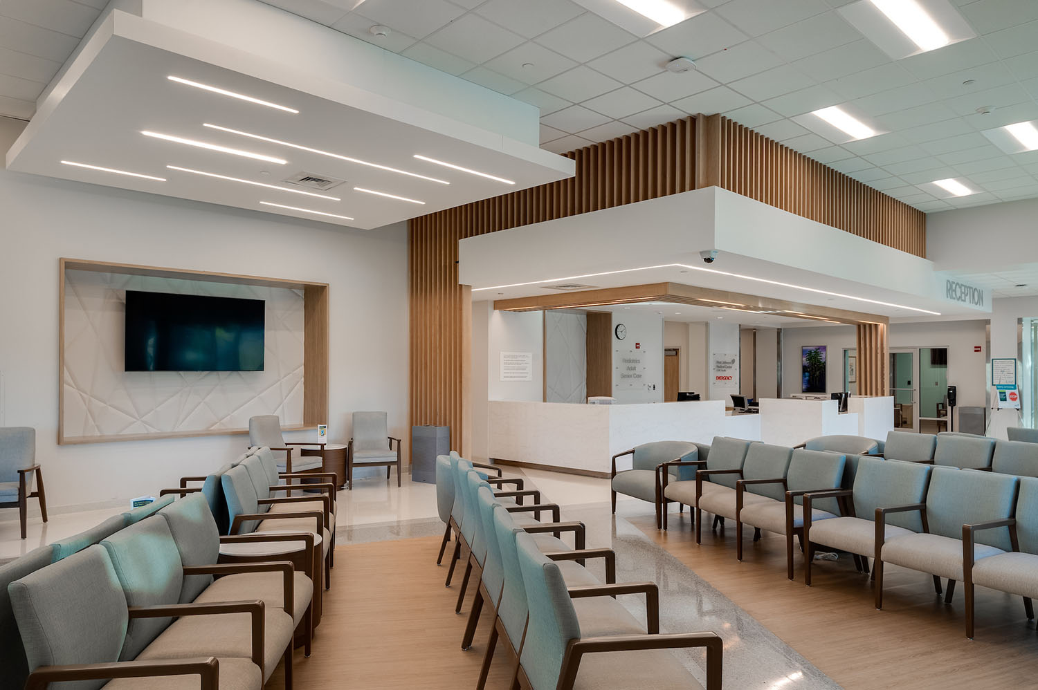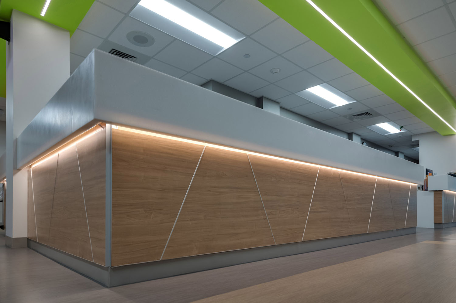 Our main hospital entrance will has been completely reconstructed, giving the hospital a modernized, welcoming front door. With a redesigned pedestrian and vehicular access and a new drop-off canopy, you can expect a convenient, safe experience during your visits. Outfitted with energy-efficient glass and contemporary finishes, the finished space greets patients and their family members with an everyone-is-welcome-here feel.
